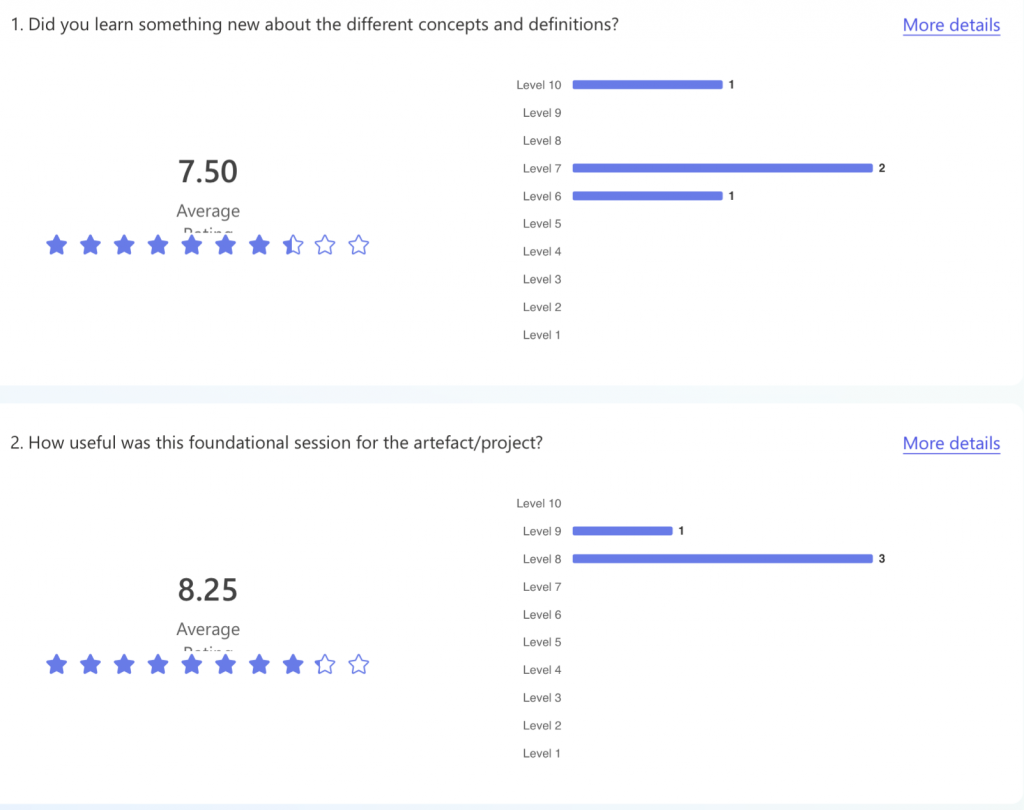 Her comments underscore the significance of engaging with these foundational theories before diving into the activity as it led to a richer discussion. The students were able to interact with the artefacts from a better-informed position, with a more critical eye. I appreciate my manager’s agreement in embedding these theories in a formal manner within the course for the benefit of the entire cohort.